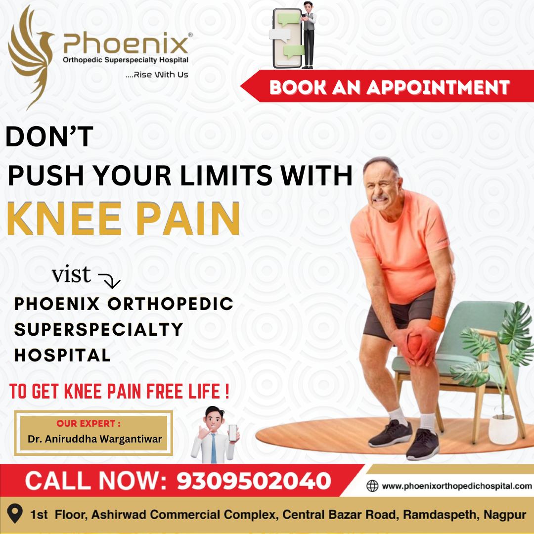 DON’T PUSH YOUR LIMITS WITH KNEE PAIN. Vist PHOENIX ORTHOPEDIC SUPERSPECIALTY HOSPITAL. #Bestorthopedichospital #trusted #5Starrating #sports #injury #hipreplcement #bestsurgeons #painreliever #health #orthognathicsurgery #orthopedichospital #arthroscopy Consultants At : 1st Floor, Ashirwad Commercial Complex, Central Bazar Road , Gandhi bagh, Ramdaspeth, Nagpur